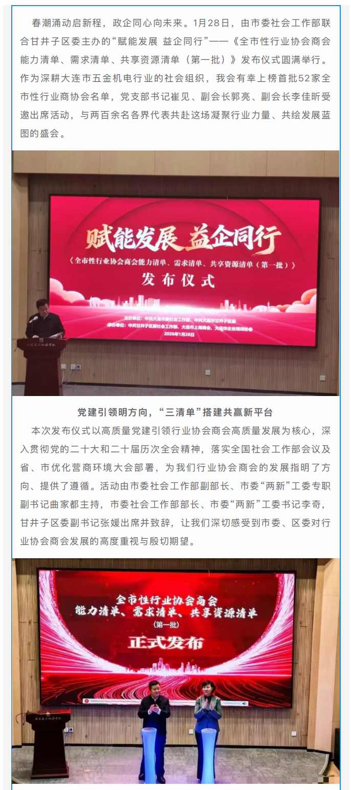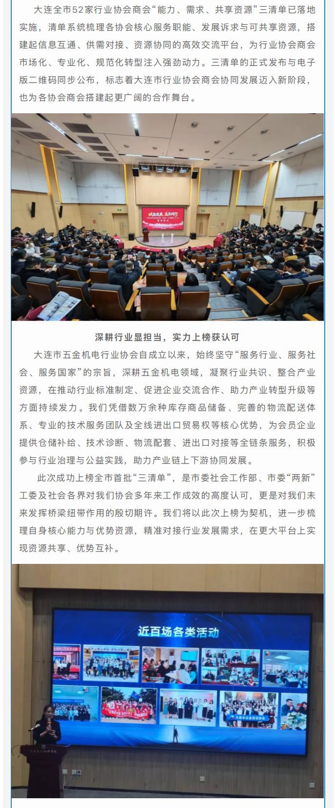 赋能发展 益企同行!大连市五金机电行业协会上榜全市首批“三清单”