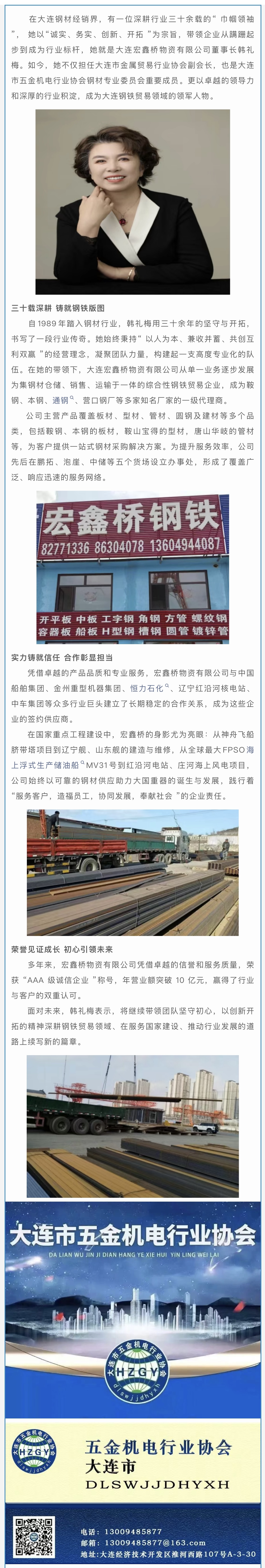 【会员风采】巾帼领航三十载 宏鑫桥书写钢铁传奇——记大连宏鑫桥物资有限公司董事长韩礼梅